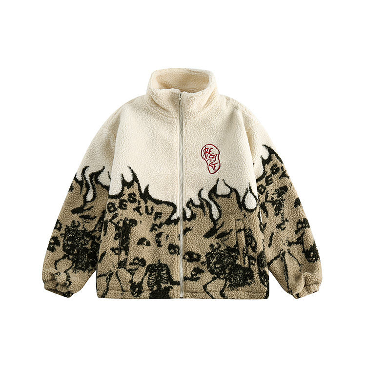 Color Patchwork Lamb Wool Coat For Men
